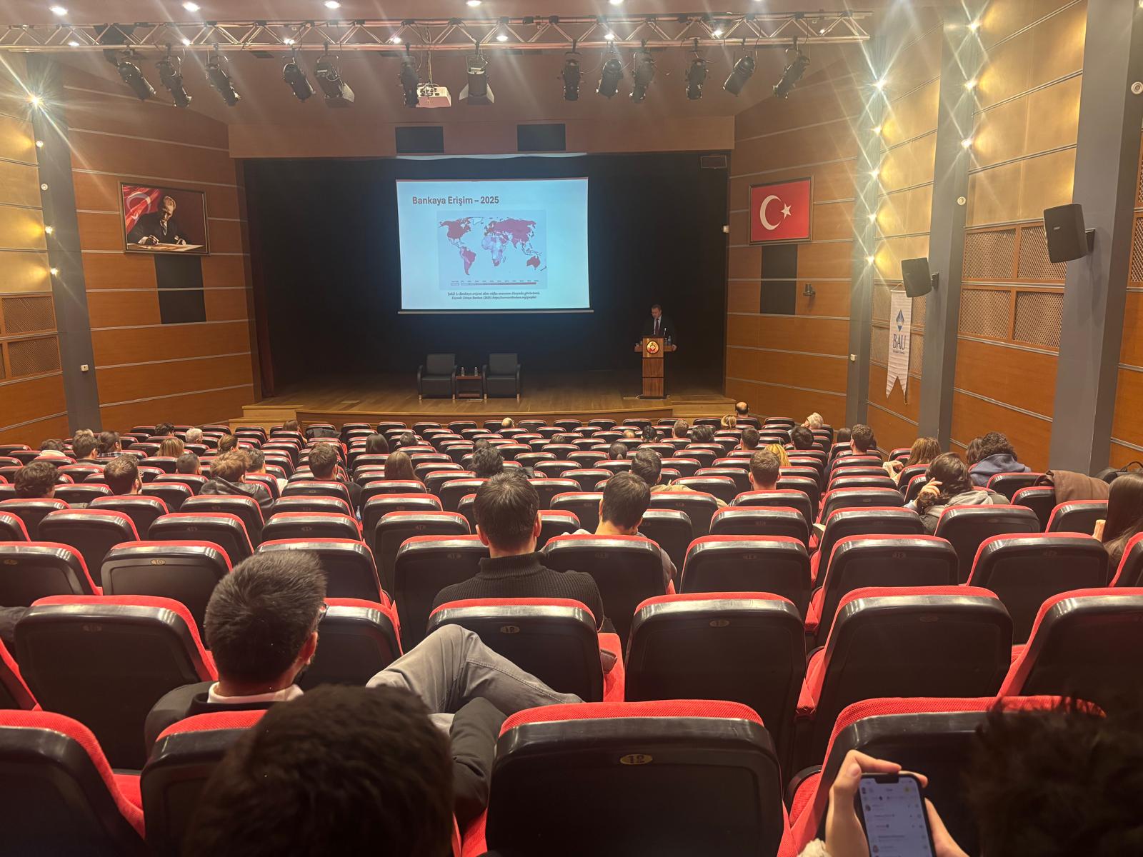 Throughout the lecture, Prof. Dr. Yolalan addressed the root causes of financial crises, discussing market volatility, macroeconomic imbalances, excessive leverage, asset bubbles, and the role of information asymmetry and behavioral factors. The speaker emphasized how cyclical patterns reoccur in global and domestic financial systems, offering attendees both theoretical insights and real-world case examples.