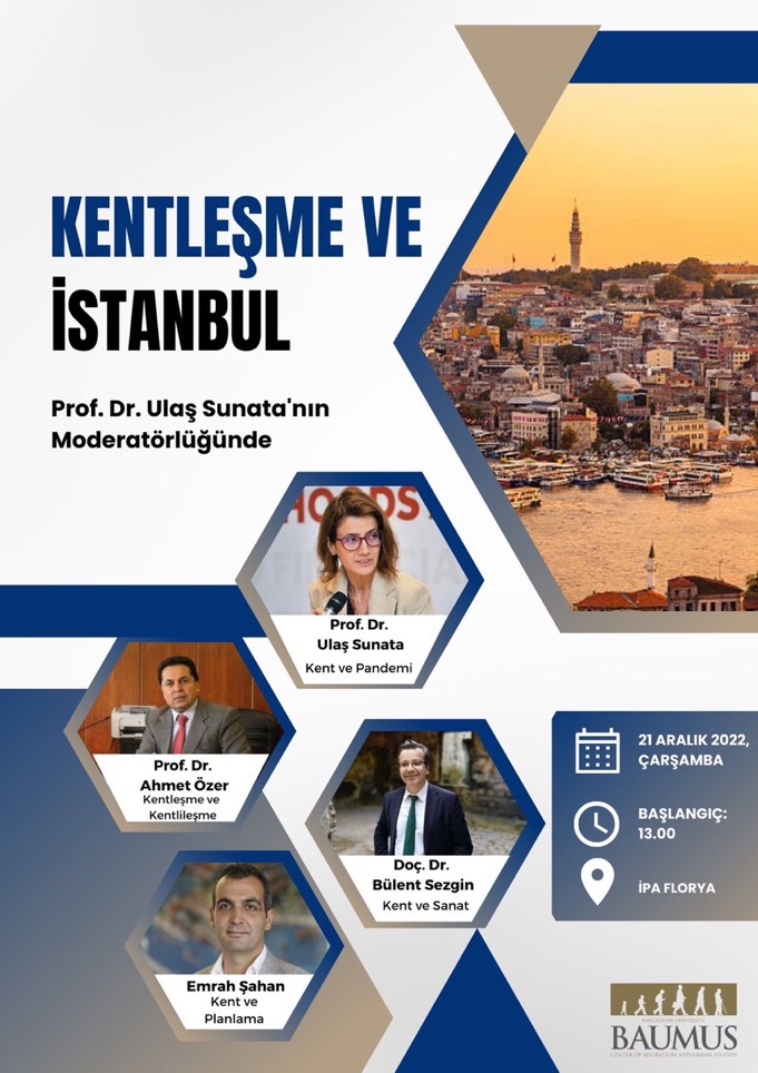 BAUMUS kurucu direktörü Prof. Dr. Ulaş Sunata moderatörlüğünde gerçekleşen etkinlik, Prof. Dr. Ahmet Özer’in “Kent ve Kentlileşme” konuşmasıyla başladı. Kentleşmeyi analitik bir çözümlemeyle anlatan Prof. Dr. Özer, konuşmasında 1923’ten günümüz tarihine kent ekseninde gelişmelerden bahsetti ve konuşmasını Türk vatandaşlarının kentlileşme deneyimlerinden örnekler vererek tamamladı.