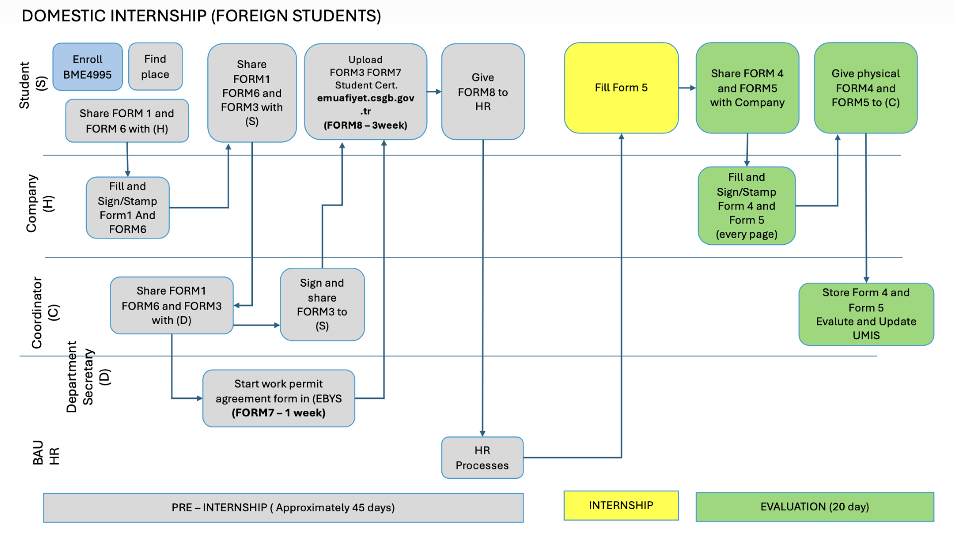 Apply individually to the company/institution/hospital where the internship will be carried out, and obtain the signed and stamped Internship Petition (DOCUMENT NO. 1) prepared by the company/institution/hospital, as well as the signed and stamped Work Permit Exemption Form (DOCUMENT NO. 6).