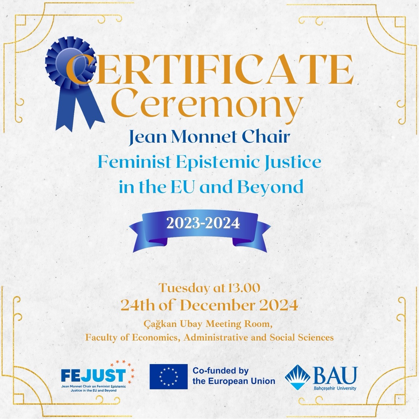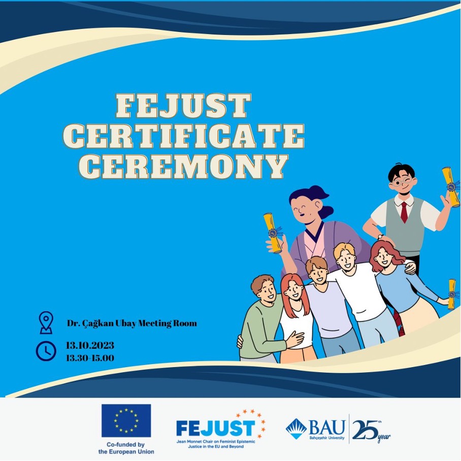 We were delighted to host the FEJUST Certificate Award Ceremony on October 13, 2023, at the Dr. Çağkan Ubay Meeting Room. This special event brought together professors from the Department of Political Science and International Relations at BAU and the Cifal Istanbul team.