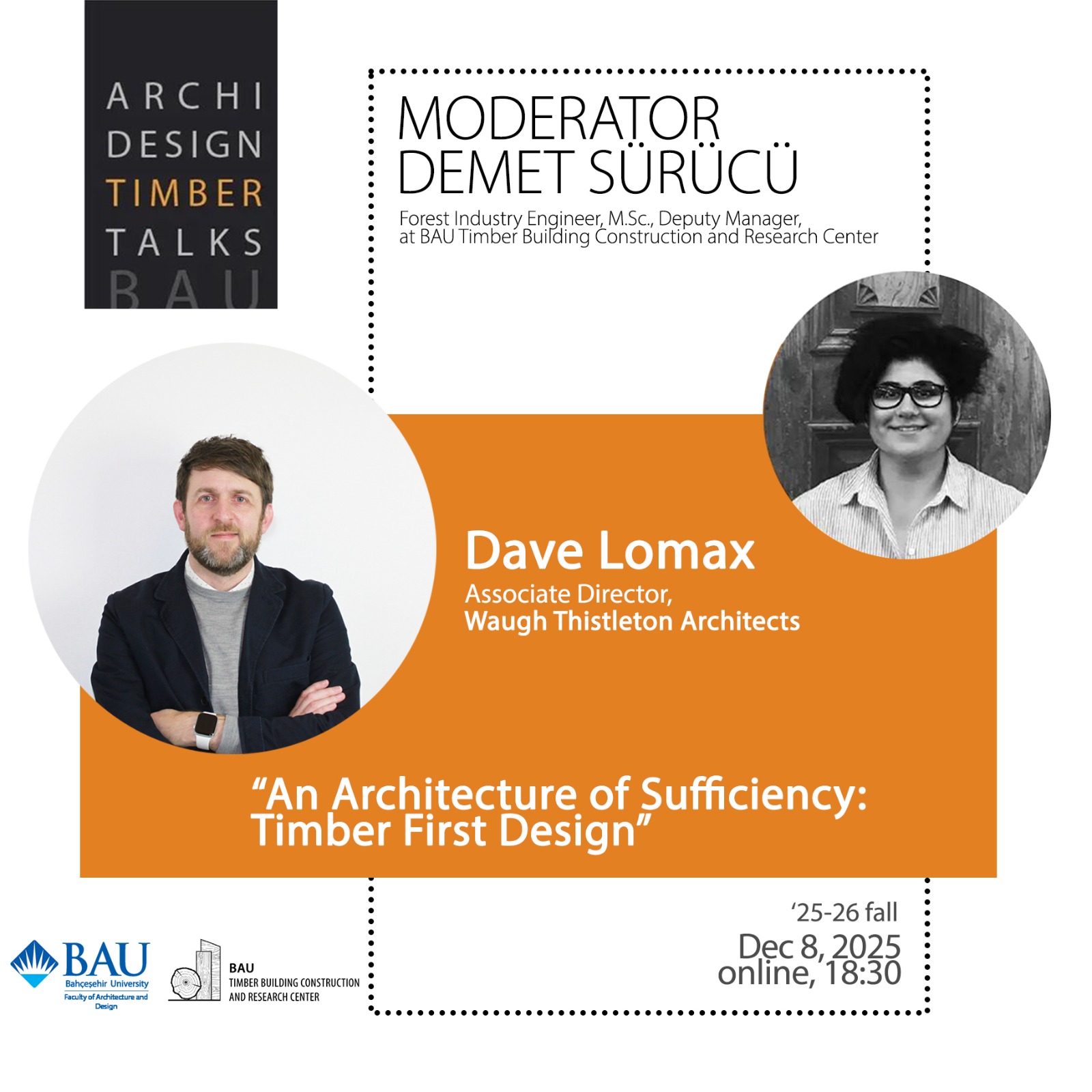 Dave Lomax, kütlesel ahşap alanında dünyanın önde gelen mimarlık ofislerinden biri olan Waugh Thistleton Architects’te Associate Director olarak görev yapmaktadır. Ofis, 2018 yılında RIBA Stirling Prize kısa listesine kalmış, 2023/24 döneminde Architect’s Journal tarafından “Yılın Mimarlık Ofisi” seçilmiş ve ayrıca 2010 yılında RIBA President’s Medal for Practice Located Research ödülüne layık görülmüştür.
