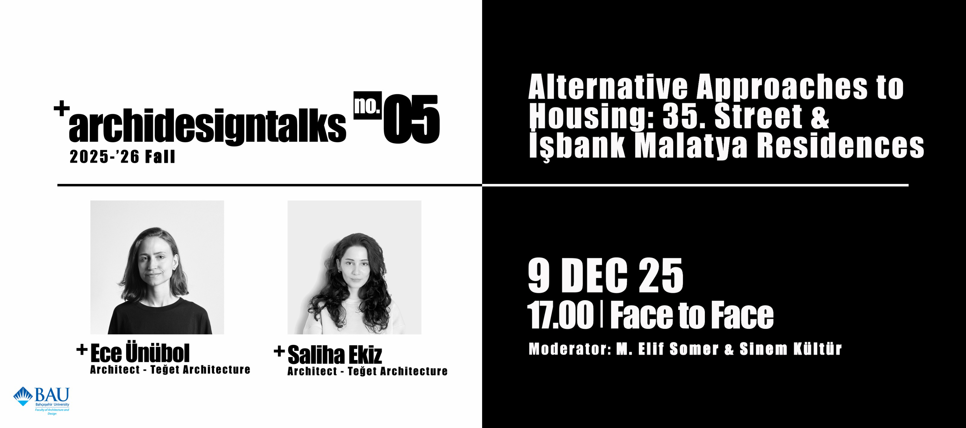 9 Aralık Salı günü, saat 17:00’de, “Konut’a Alternatif Yaklaşımlar: 35. Sokak & İşbank Malatya Konutları” başlıklı konuşmayı Kuzey Kampüs, B Blok, KST 601–602 stüdyolarında gerçekleştireceğiz.