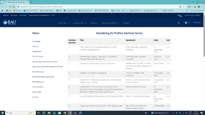 In addition, lecture notes and course materials from FEJUST undergraduate courses—Gender Politics in the EU and Gender in International Development—were made available as open-access resources on the FEJUST website, ensuring continued learning opportunities for individuals outside formal higher education.