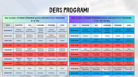 The four images below show course schecules and the highlight pictures of Bahcesehir University Global Autonomous Learner Children’s.
