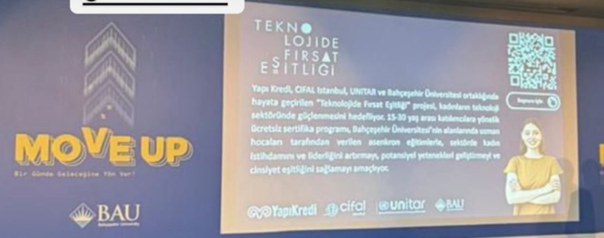 Bahçeşehir University (BAU), in collaboration with CIFAL Istanbul, affiliated with the United Nations Institute for Training and Research (UNITAR), and in partnership with Yapı Kredi Bank, continues to advance its mission of promoting equality and innovation through the “Equal Opportunity in Technology Certification Program.” This initiative is designed to increase women’s participation in the fields of technology and innovation, contributing to the creation of a more inclusive and diverse digital future.