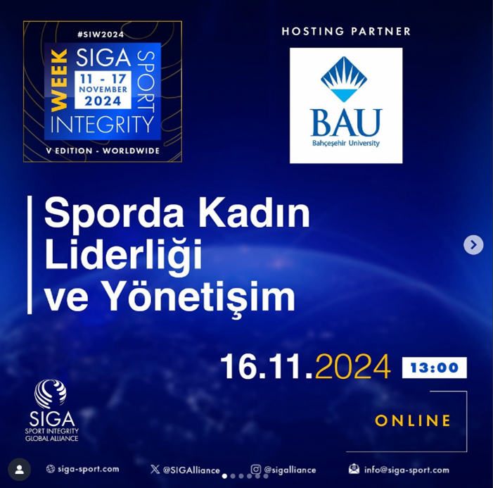 In line with its ongoing commitment to gender equality and women’s empowerment in leadership, Bahçeşehir University (BAU) organized the online event “Women’s Leadership and Governance in Sports” in collaboration with the Sport Integrity Global Alliance (SIGA) as part of the 2024 Sport Integrity Week.