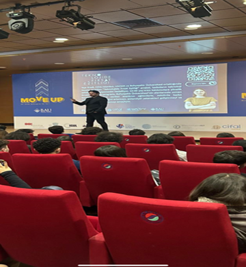 The images below present both the official promotional poster of the BAU “MOVE UP Program” and selected moments from the program.