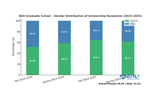As part of its transparency and accountability principles, the gender distribution of scholarship recipients under the ApplyBAU system is publicly shared each year.