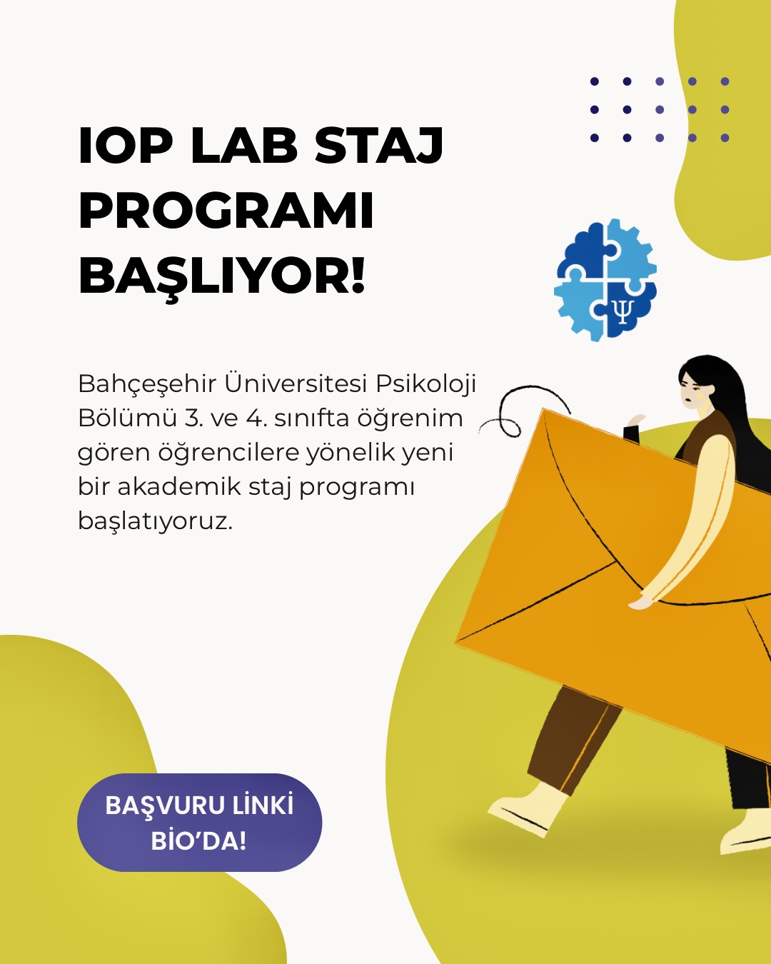 Bahçeşehir Üniversitesi Psikoloji Uygulamaları ve Araştırmaları Merkezi (PUAM) bünyesinde faaliyet gösteren IOP Lab, 2025 dönemi için staj programı başvurularını kabul etmeye başlamıştır.