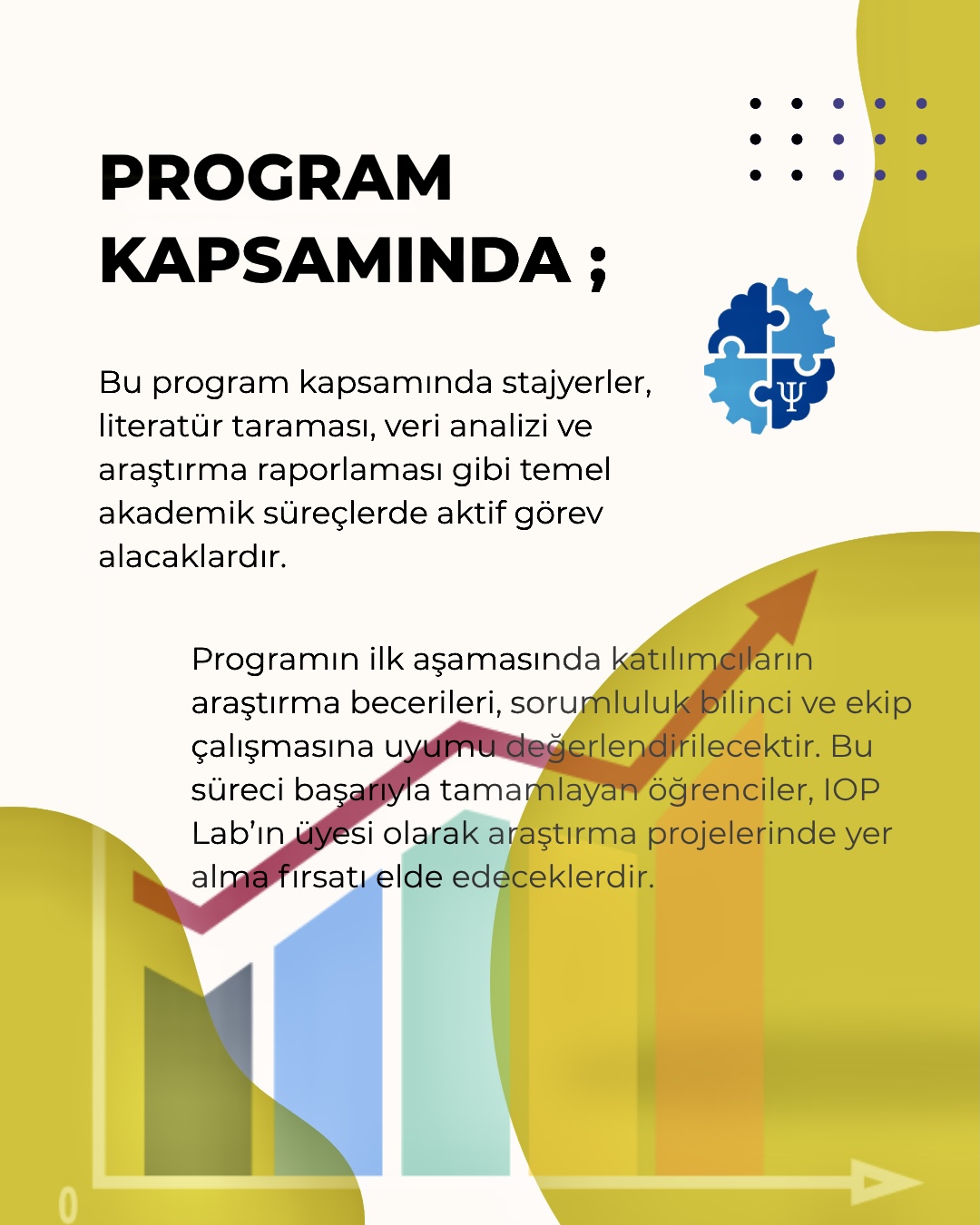 IOP Lab, psikoloji alanında bilimsel üretimi desteklemeyi ve öğrencilerin araştırma yetkinliklerini geliştirmeyi hedefleyen bu programa ilgi duyan ve başvuru koşullarını sağlayan tüm öğrencileri başvuru sürecine davet etmektedir.