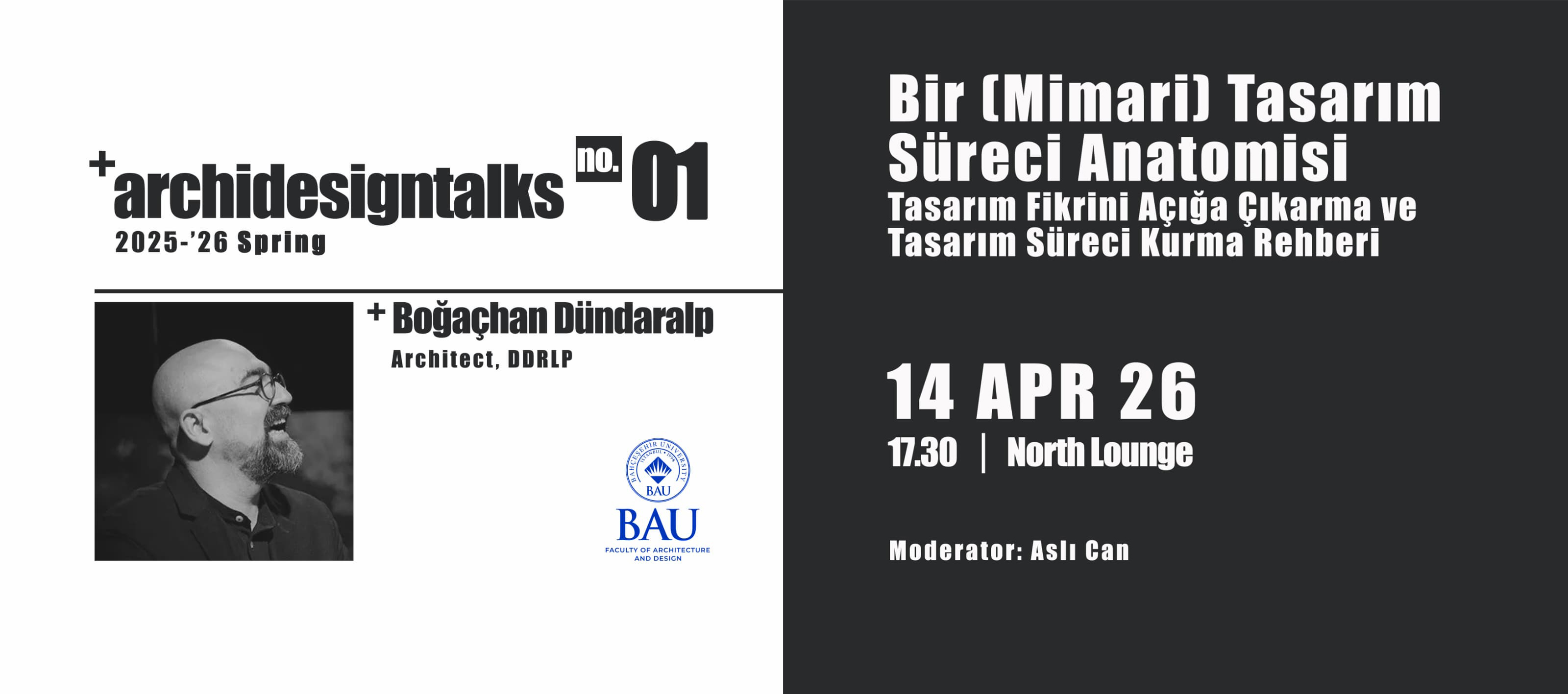 The first Archidesign Talks of the semester is here! ✨ On April 14, 2026, North Lounge will host renowned architect Boğaçhan Dündaralp for an insightful discussion on his latest book, "Bir Mimari Tasarım Süreci Anatomisi".